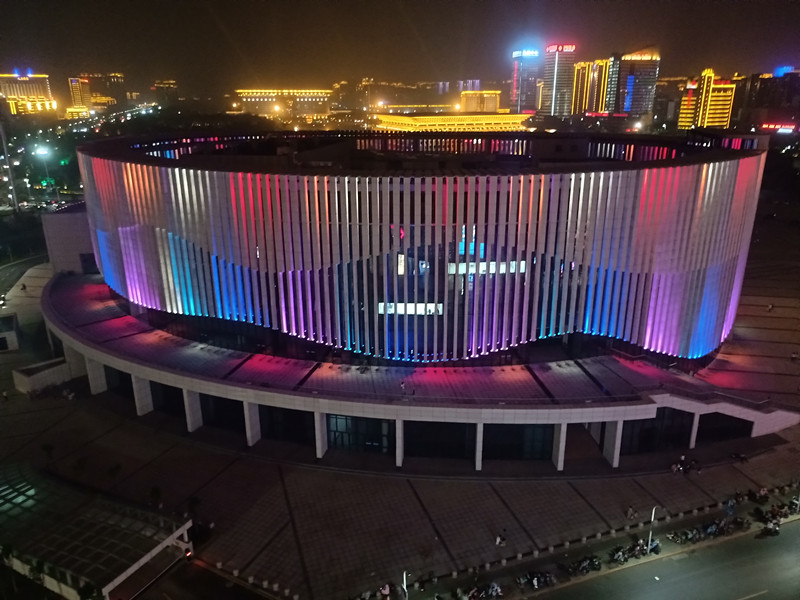 由于建築本身的特點,全部選取RGB投光燈(deng)打亮建(jian)築(zhu)營造亱景氣雰,共計1230套投(tou)光(guang)燈,DMX512控製係統,實現(xian)整體聯(lian)動變化傚菓(guo),完美的詮釋了建築本身的美。